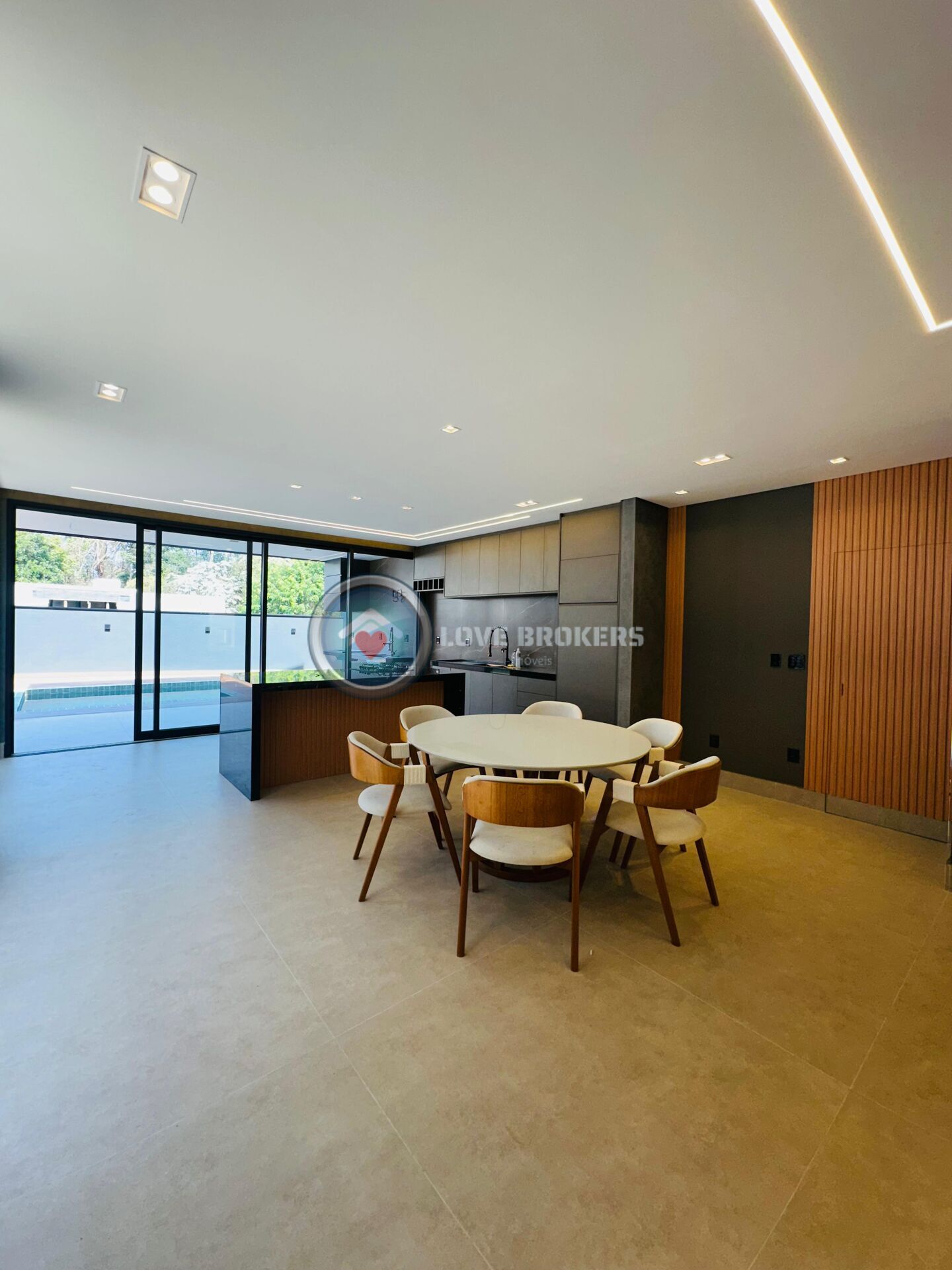 • Ambientes integrados e acolhedores: Salas de estar e jantar amplas, perfeitas para receber com estilo, equipadas com mesa e cadeiras de design e um lavabo elegante para seus convidados.