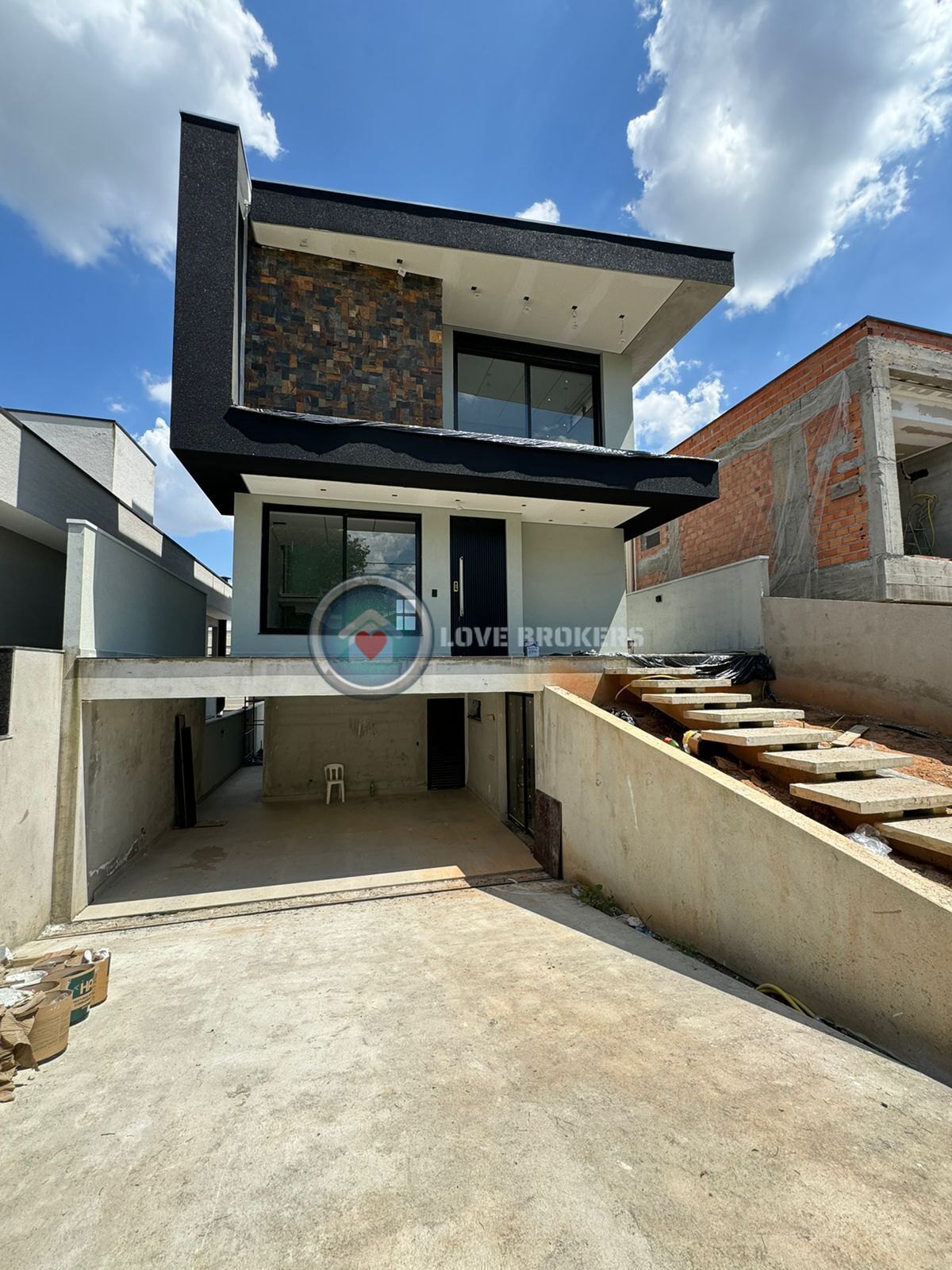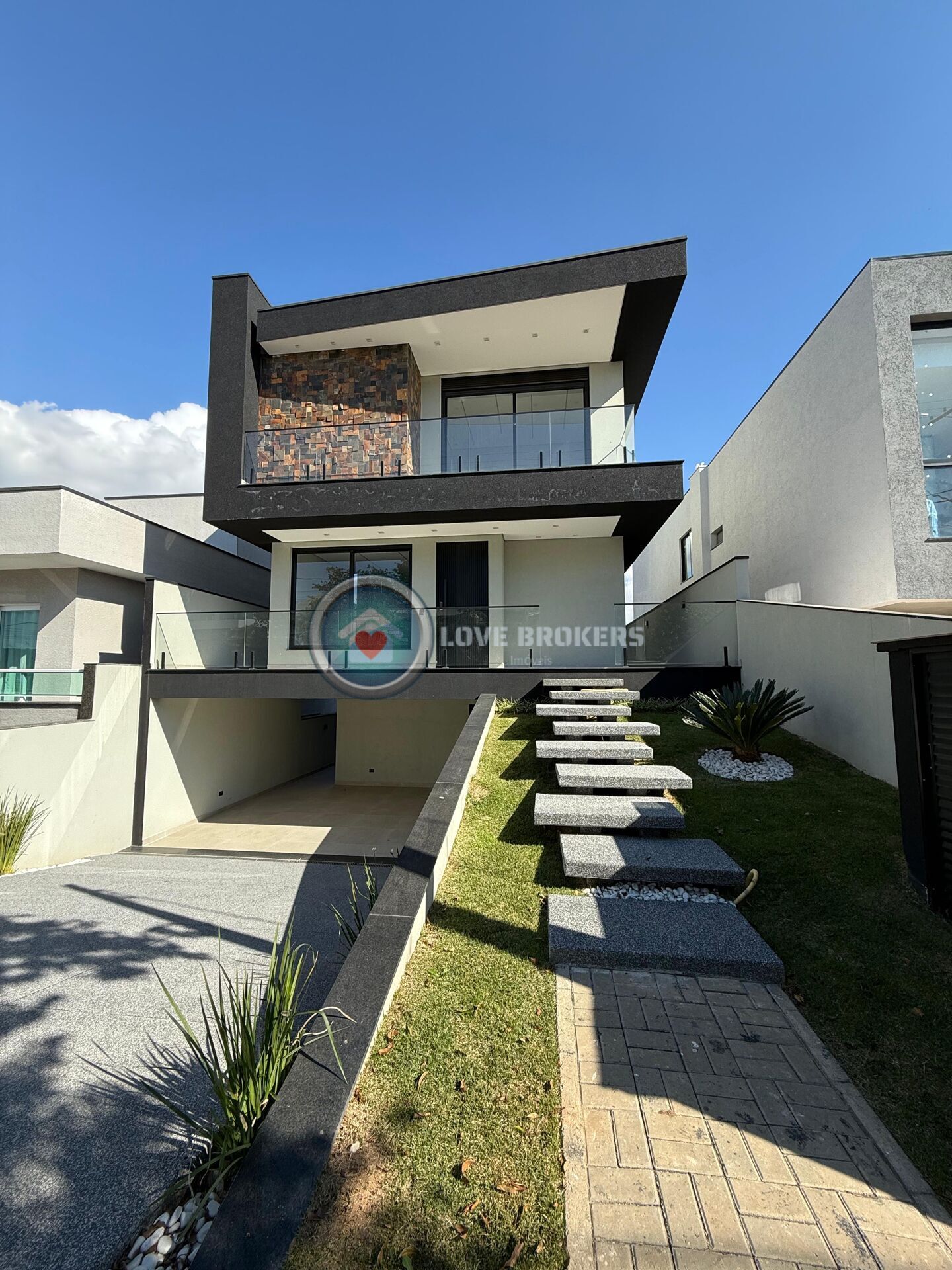 1 pavimento: Garagem para 3 carros cobertos + 2 carros descobertos, lavanderia, área de lazer com churrasqueira integrada com a área gourmet juntamente com a piscina.